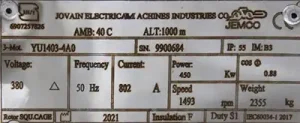 الکتروموتور جمکو سه فاز ۴۳۰ اسب ۳۱۵ کیلووات ۱۰۰۰ دور