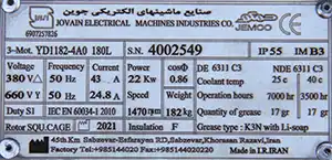 ویژگیهای فنی الکتروموتور جمکو 30 اسب 22 کیلووات 1500 دور