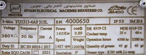 ویژگیهای فنی الکتروموتور جمکو 160 کیلووات 1500 دور